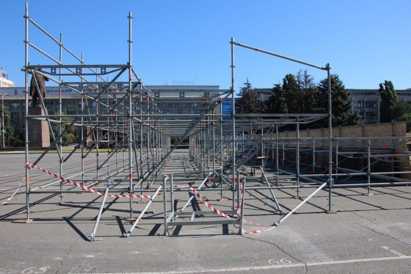 С 11 по 20 августа в Саратове впервые будет проходить суперфинал чемпионата России по пляжному футболу. Специально к турниру на Театральной площади будет собран стадион с трибунами. На данный момент уже установлены металлические конструкции для трибун. На одной из них рабочие покрыли каркас деревом. На верхнем ярусе, вероятно, будут установлены пластиковые кресла.