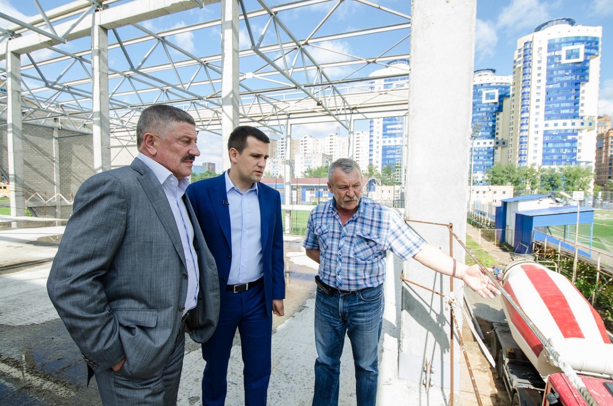 В настоящее время на стройплощадке ведутся работы по возведению внутренней перегородки комплекса, подъездные дороги заливают бетоном.